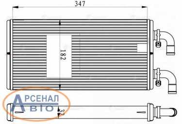 Основные характеристики товара: Тип конструкции - со съемными трубками; Для автомобилей с механической коробкой передач; Высота сердцевины - 182мм; Материал сердцевины - алюминий; Толщина сердцевины - 32мм; Тип сердцевины - паяная; Для автомобилей с кондиционером или без кондиционера; Длина сердцевины - 347мм